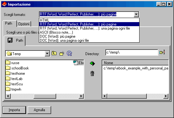 Html e Rtf, ad esempio da MSWord o Word Perfect.